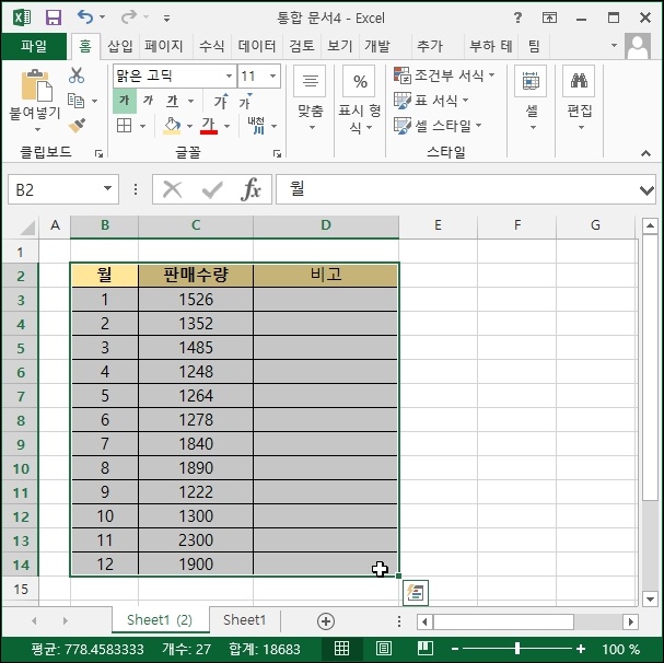 배경색 글꼴 등의 서식은 기본으로 복사되지만, 너비는 복사되지 않습니다.
