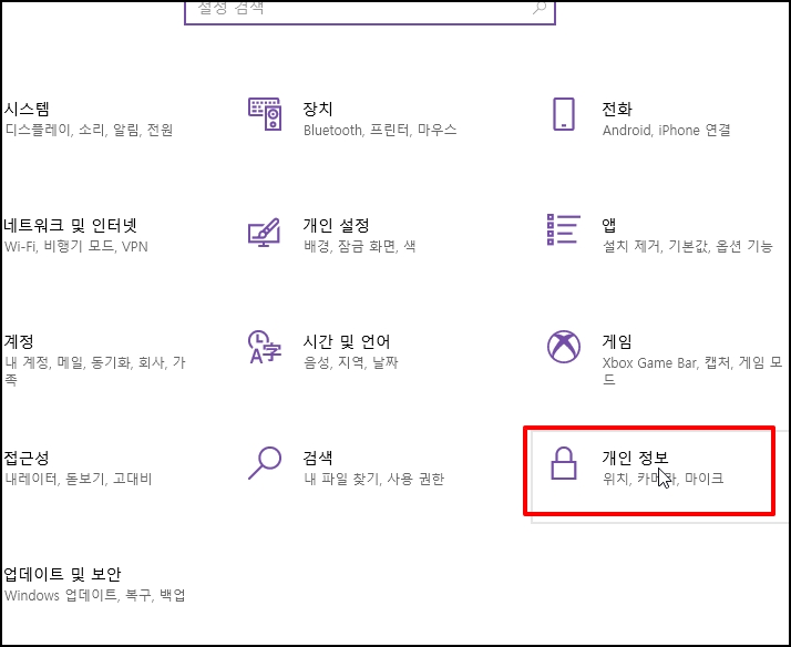 Windows 설정에서 [개인 정보]로 이동 합니다.