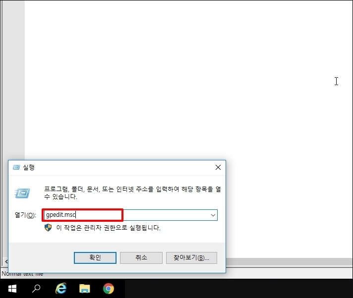2. "윈도우 키 + R" 키를 눌러 실행 창을 열어주세요. 입력 박스에 "gpedit.msc"를 입력 후 엔터키를 눌러주세요