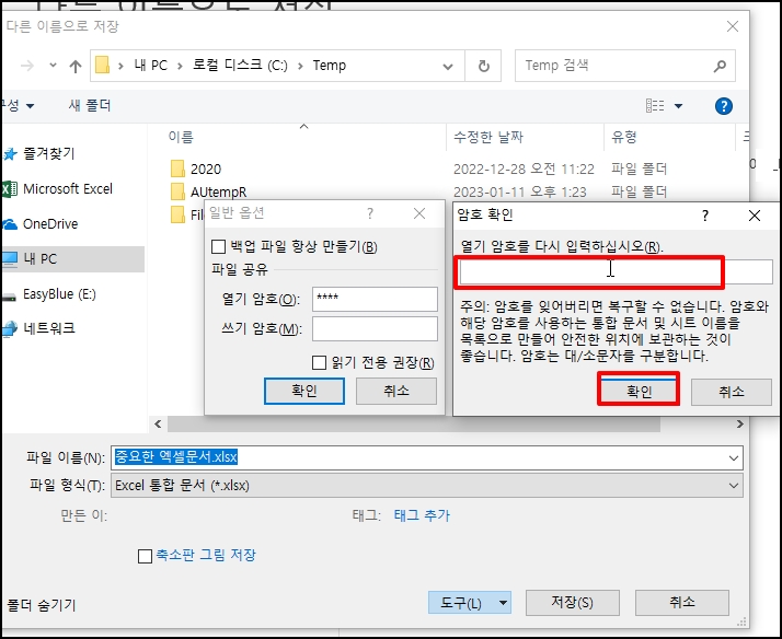 다만 보안상 열기 암호만 해도 충분하므로 보통 열기 암호를 많이 사용합니다.