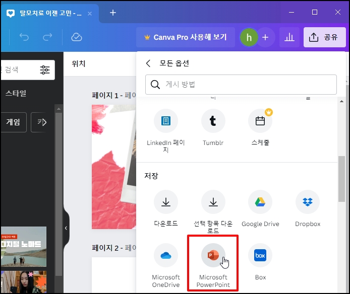 캔바 CANVA PPT 파워포인트로 변환 다운로드 저장하는 방법